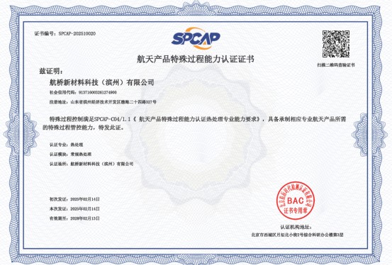 近期,經過中國航天標準化研究所專家組嚴格的審核,公司熱處理工序順利通過航天產品特殊過程能力認證...
